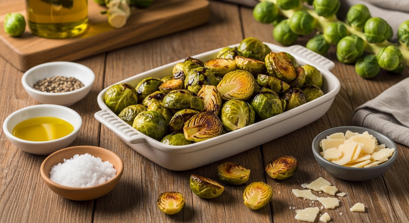 For mushiness, avoid overcrowding your pan; give the sprouts space so they roast instead of steam. If you prefer extra crispiness, toss them with a tablespoon of cornstarch before baking, or finish roasted sprouts under the broiler for two to three minutes.