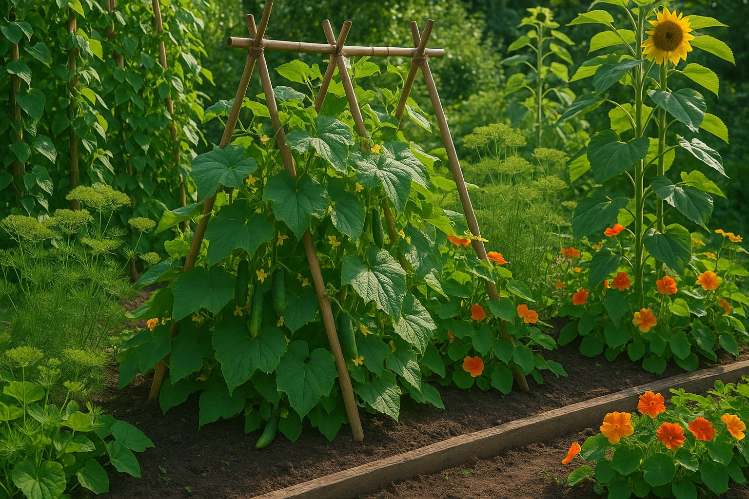 Choosing the right companion plants can make a big difference when growing cucumbers, both in crop health and yield. Legumes like beans and peas are classic companions, enriching the soil by fixing nitrogen and giving cucumbers the nutrients they need to thrive. Try planting pole beans at the back of a raised bed with cucumbers in front, so both can climb trellises without crowding.